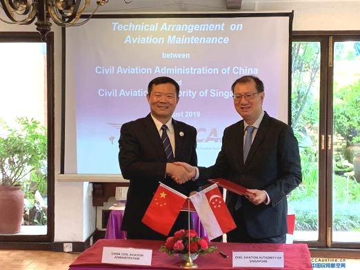 2019年8月20日,,,,,,在第56届亚太民航局长聚会时代,,,,,,中国民用航空局副局长李健与新加坡民航局局长岑景祺在尼泊尔首都加德满都签署了《中国民用航空局和新加坡民航局航空维修手艺安